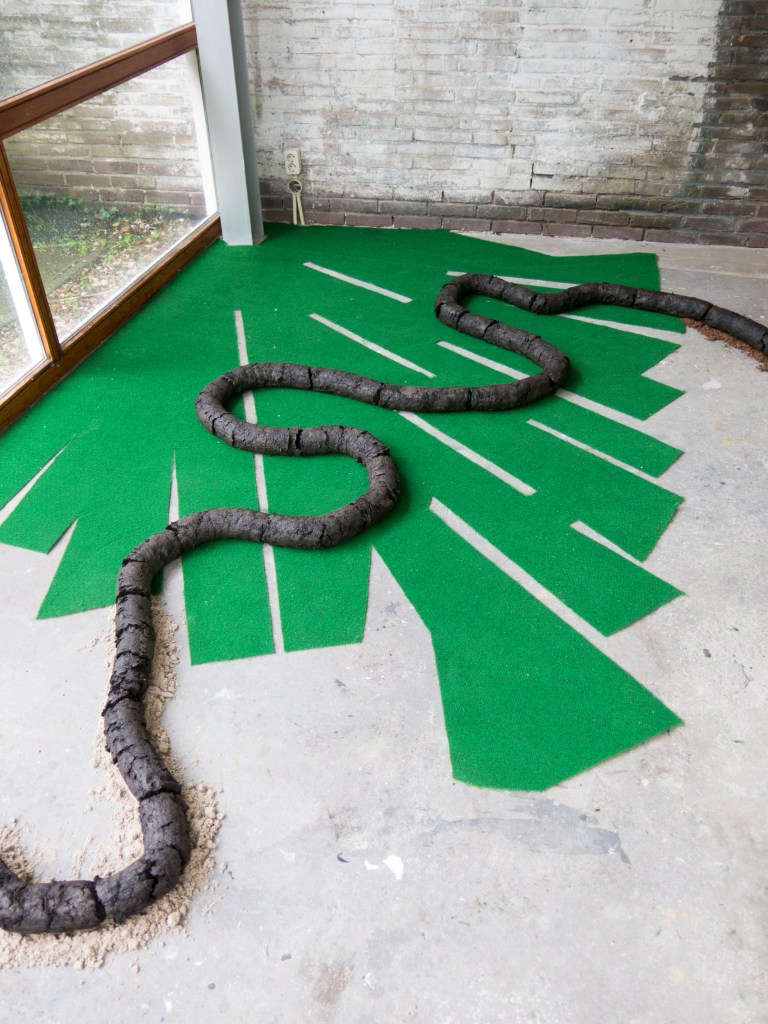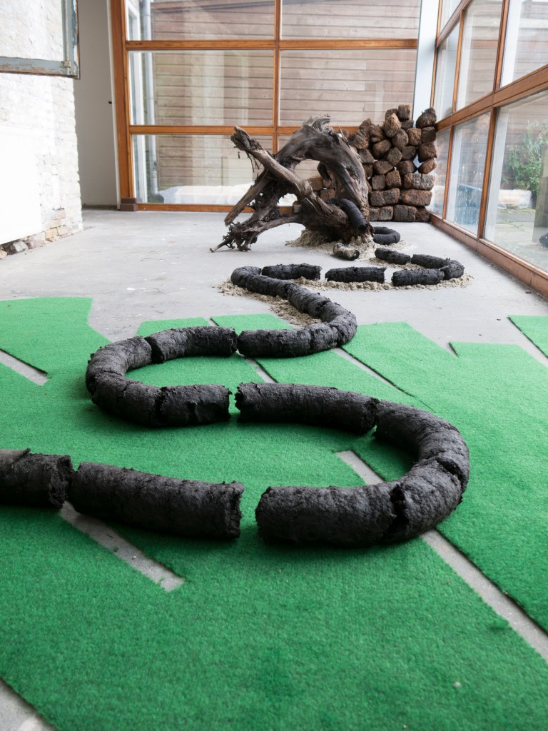 During my residency, I conducted a research project on the history of the peatlands surrounding Beetsterzwaag, and its neighbouring village Nij Beets. The villages hold a deep historical connection to the soil they were built on: peat and sand grounds, which were touched, moved and shaped entirely by human labour. To this day, the history of these soils both connect and divide the communities: the noble men and land owners that lived on the sandy grounds of Beetsterzwaag, next to the commoners and labourers that lived on the peatlands of Nij Beets. I was interested in how the material had generated meaning in this juxtaposition over time, and how it could still have meaning in the present. During my residency, I collaborated with scientists, peat workers, land owners and locals. The project resulted in a large installation at Kunsthuis SYB, which functioned as a visual narrative through the past and present of these landscapes.